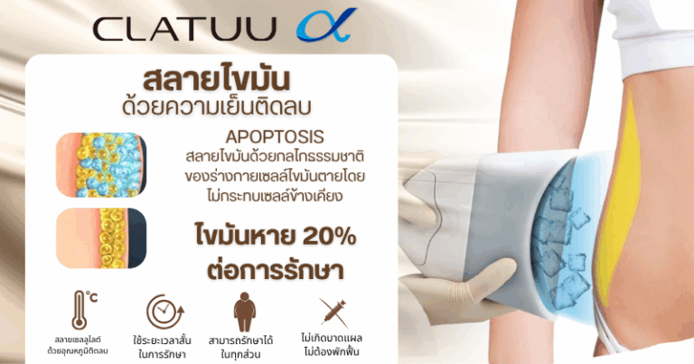 Clatuu คือเทคโนโลยี สลายไขมันด้วยความเย็น (Cryolipolysis) จากเกาหลีใต้ ที่ช่วยให้เซลล์ไขมันตายแบบถาวรโดยไม่กระทบต่อผิวหนังหรือเนื้อเยื่อรอบข้าง