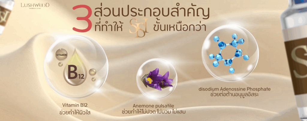 • วิตามิน B Complex และ B12 — ช่วยเสริมการทำงานของระบบเผาผลาญพลังงานและลดอาการบวมหลังฉีด